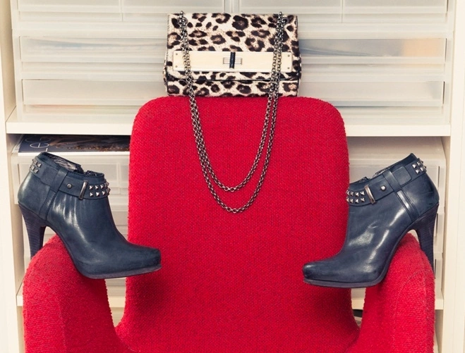Cô thích mang cả giày cao gót và giày đế bằng, buổi sáng thường là giày oxford của nam, còn tối là bốt cao gót viền đinh tán.