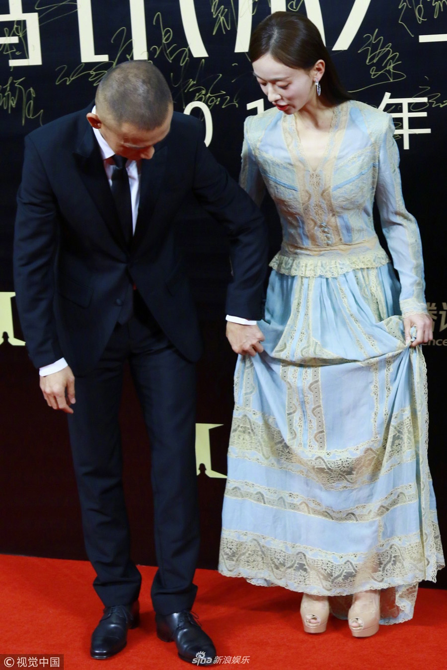 Theo Sina, thấy Ngô Cẩn Ngôn liên tục giẫm vào chân váy khi di chuyển, Nhiếp Viễn giúp người đẹp xách váy khi đi thảm đỏ.