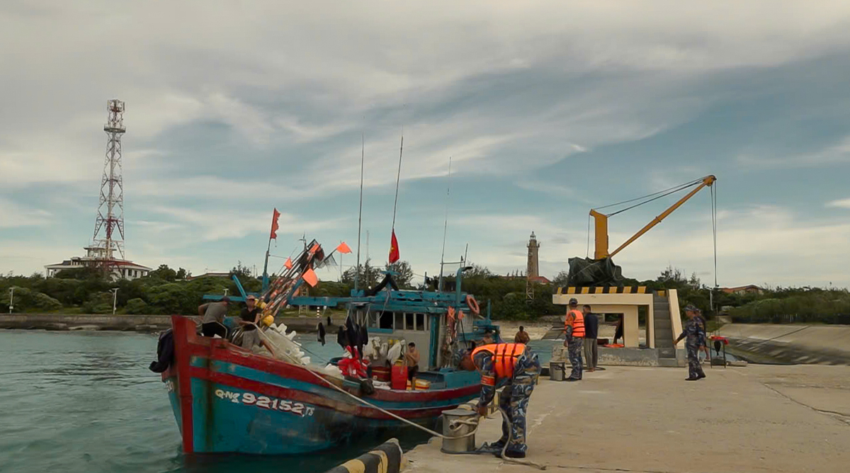 Hải đoàn 129 Hải quân giúp ngư dân neo đậu tàu ở đặc khu Trường Sa. Video: Trường Hà
