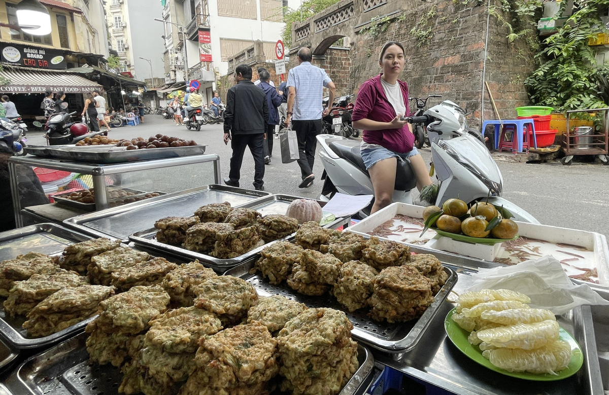 Buổi trưa, từ 11h đến 13h30 là thời điểm đông nhất. Mùa hè khách giảm một nửa so với mùa đông. Khách ra vào nườm nượp, từ người trẻ đến người lớn tuổi, khách miền Nam và cả người nước ngoài. Chị Nga rán chả không ngơi tay.