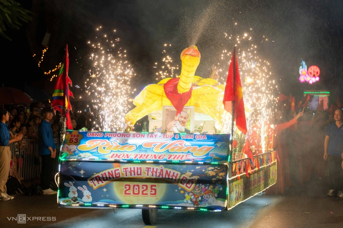 Tại phố đi bộ Sơn Tây (phường Sơn Tây, Hà Nội), hàng nghìn người dân theo dõi 19 đội thi rước đèn và diễu hành với chủ đề “Trung thu Thành cổ - Sơn Tây xứ Đoài”, tối 27/9.