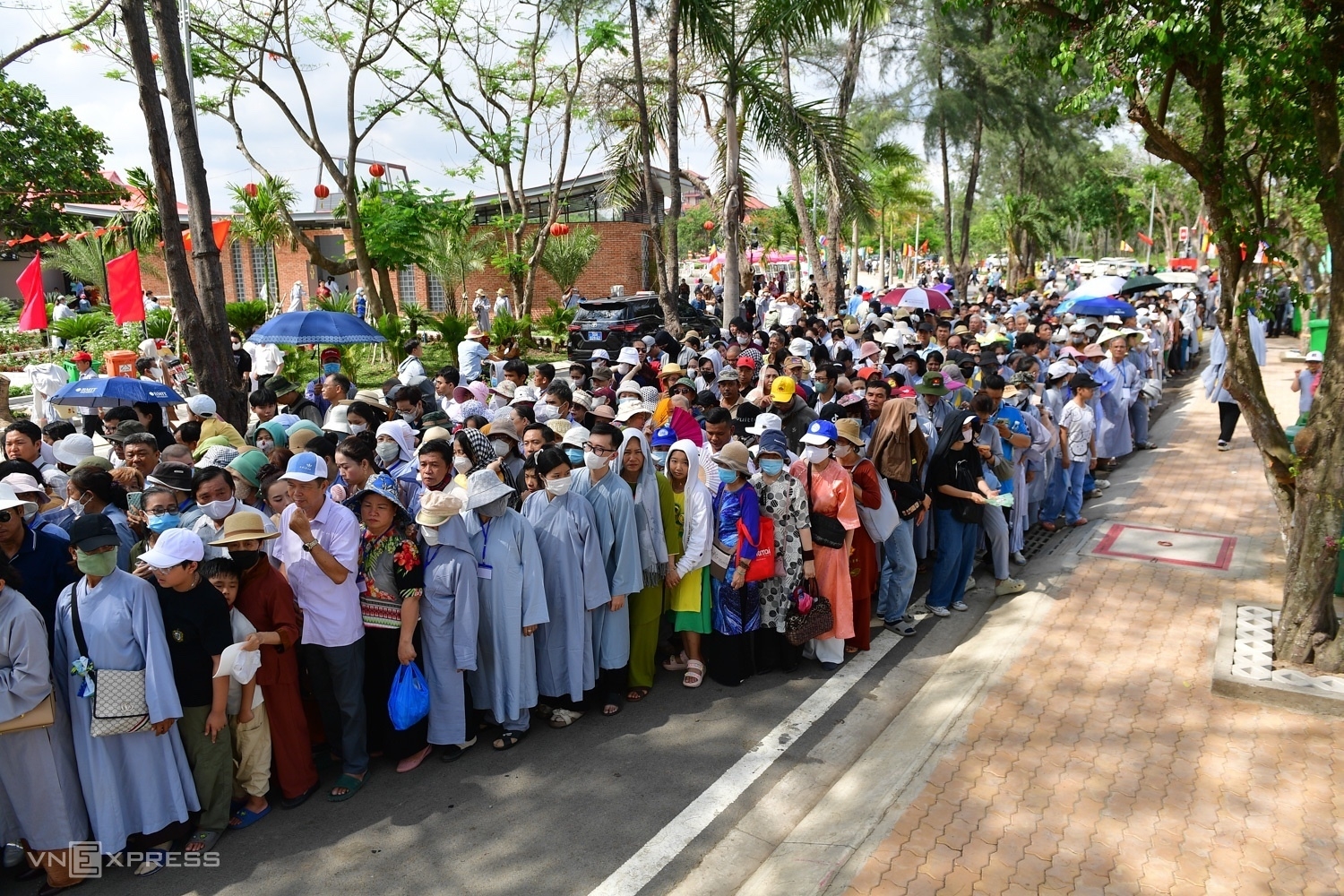 Bên ngoài khuôn viên trước chánh điện chùa, đông đúc phật tử thắp hương niệm Phật. Đến gần trưa, lượng khách tới chùa ngày càng đông.