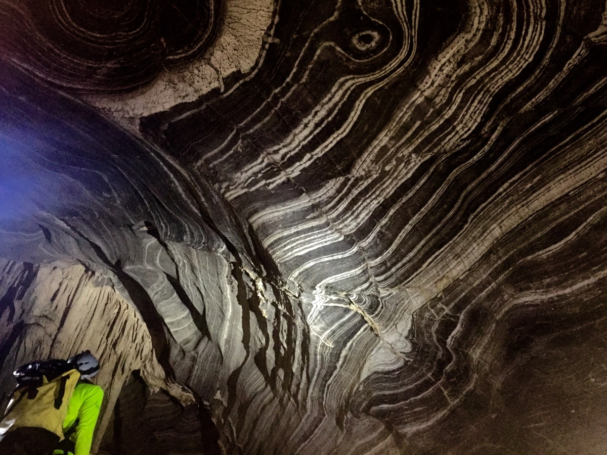 Các vỉa thạch nhũ bên trong hang Tiên. Theo người dân địa phương, hang được đặt tên theo truyền thuyết những vị tiên nữ giáng trần mải thưởng ngoạn cảnh đẹp tráng lệ mà quên đường về trời.