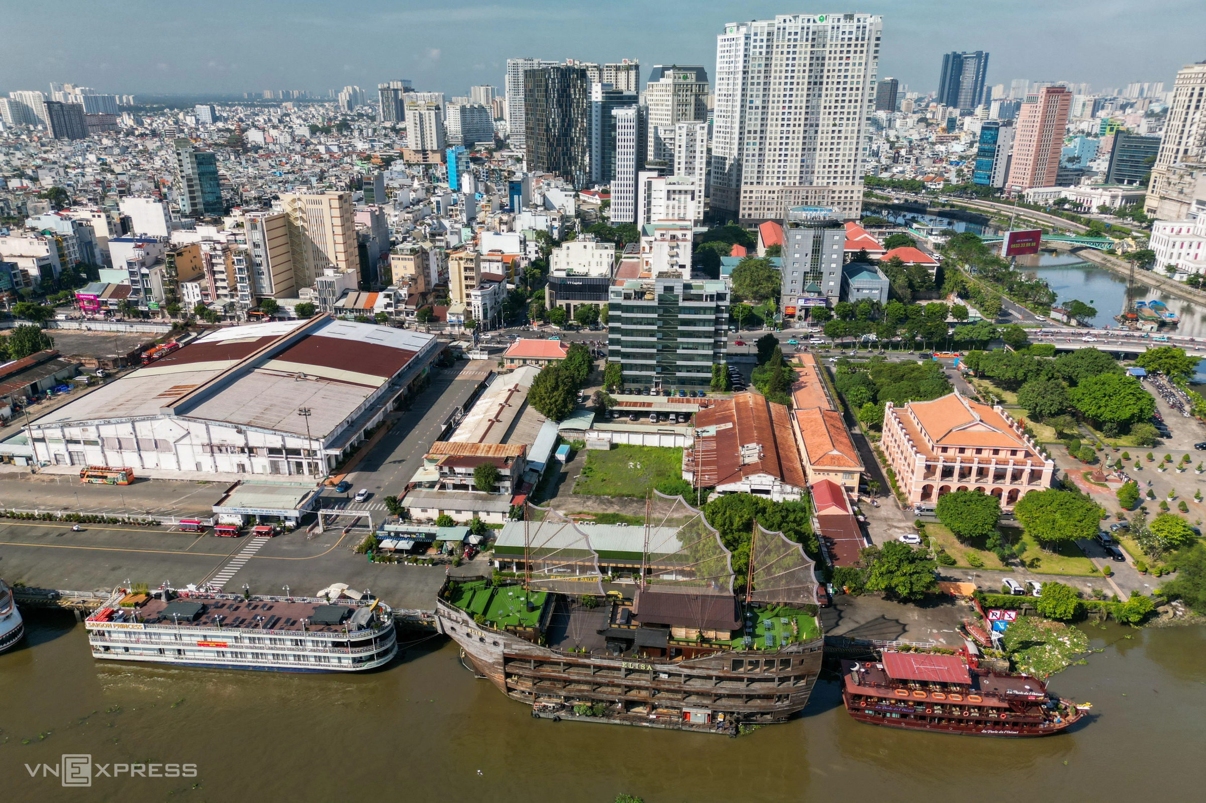 Điểm đầu khu đất là Bảo tàng Hồ Chí Minh – Chi nhánh TP HCM, nơi gắn với sự kiện ngày 5/6/1911 khi Nguyễn Tất Thành lên tàu Amiral Latouche-Tréville ra đi tìm đường cứu nước. Phía sau là khu xưởng, kho bãi, cầu tàu từng sầm uất một thời.
