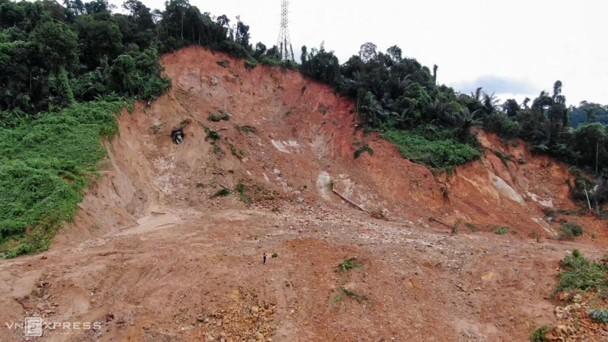 Máy móc phục vụ thi công của công trình thủy điện ngổn ngang sau vụ sạt lở.