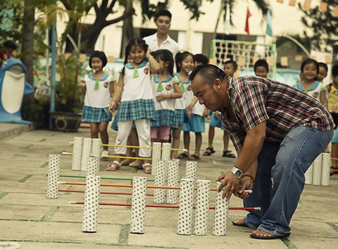 Hiếu Hiền hòa vào thế giới tuổi thơ. "Chỉ trong một buổi thôi mà tôi thấy mình trẻ lại cả mười mấy tuổi. Không gì hạnh phúc khi ta còn là trẻ nhỏ", anh chia sẻ. |