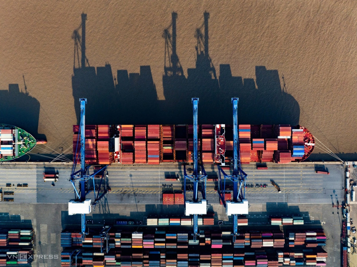 Trong ảnh là cụm cảng Lạch Huyện vào tháng 1/2025 với hai bến đang hoạt động và bốn bến đang xây dựng.