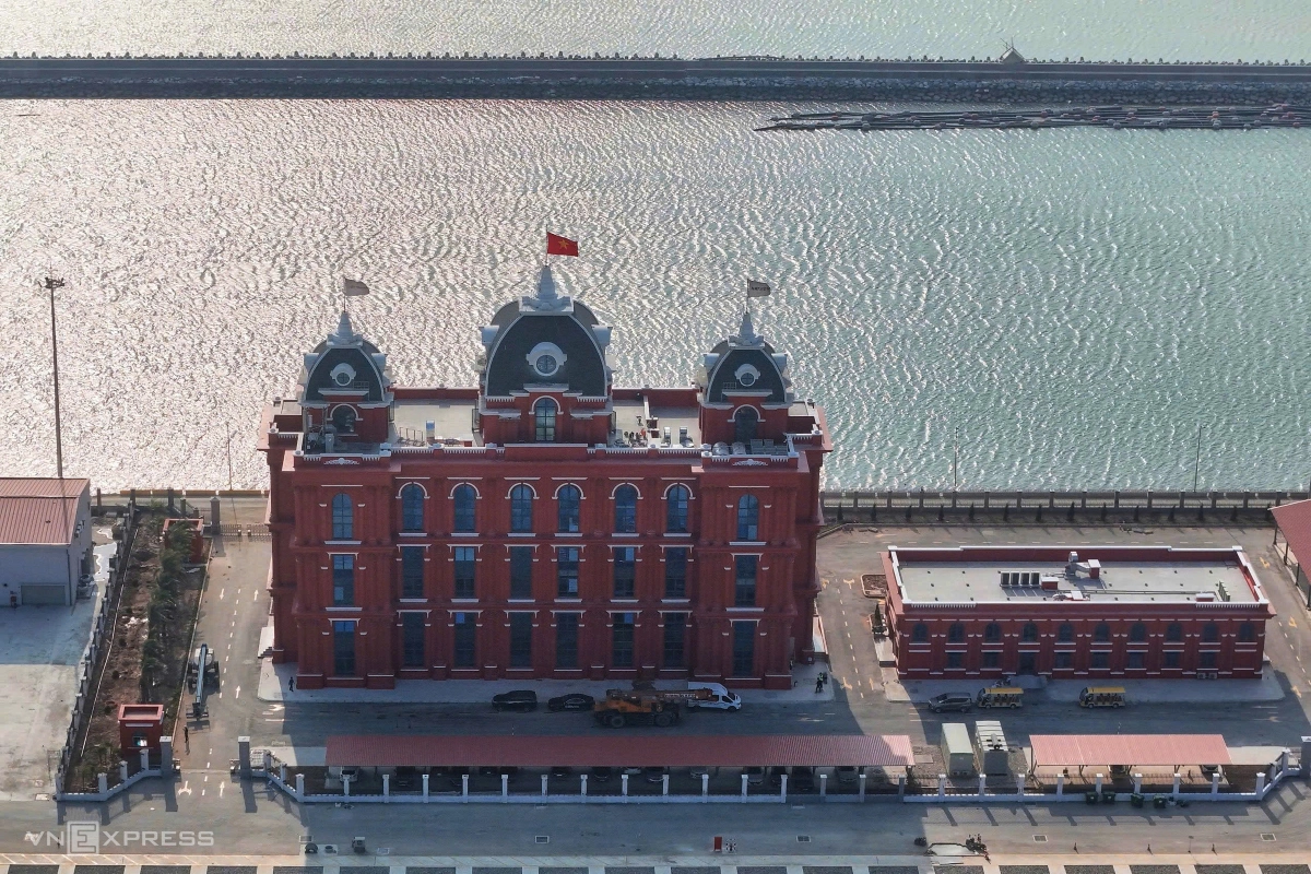 Tòa nhà điều hành cảng với kiến trúc và màu sơn nổi bật đã hoàn thiện và đi vào sử dụng từ tháng 11/2024.