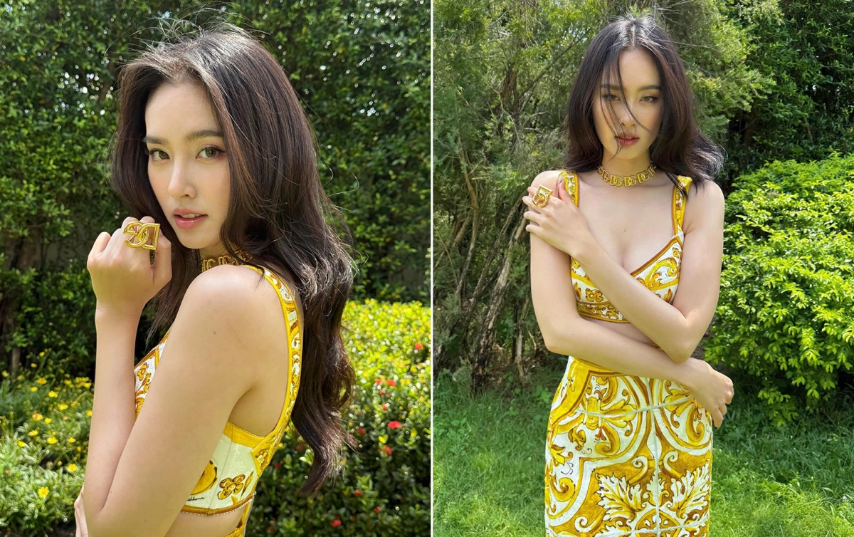 Vóc dáng cân đối và thần thái giúp Nong Poy tôn vẻ đẹp của bộ đồ.
