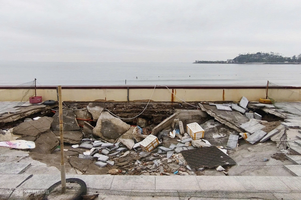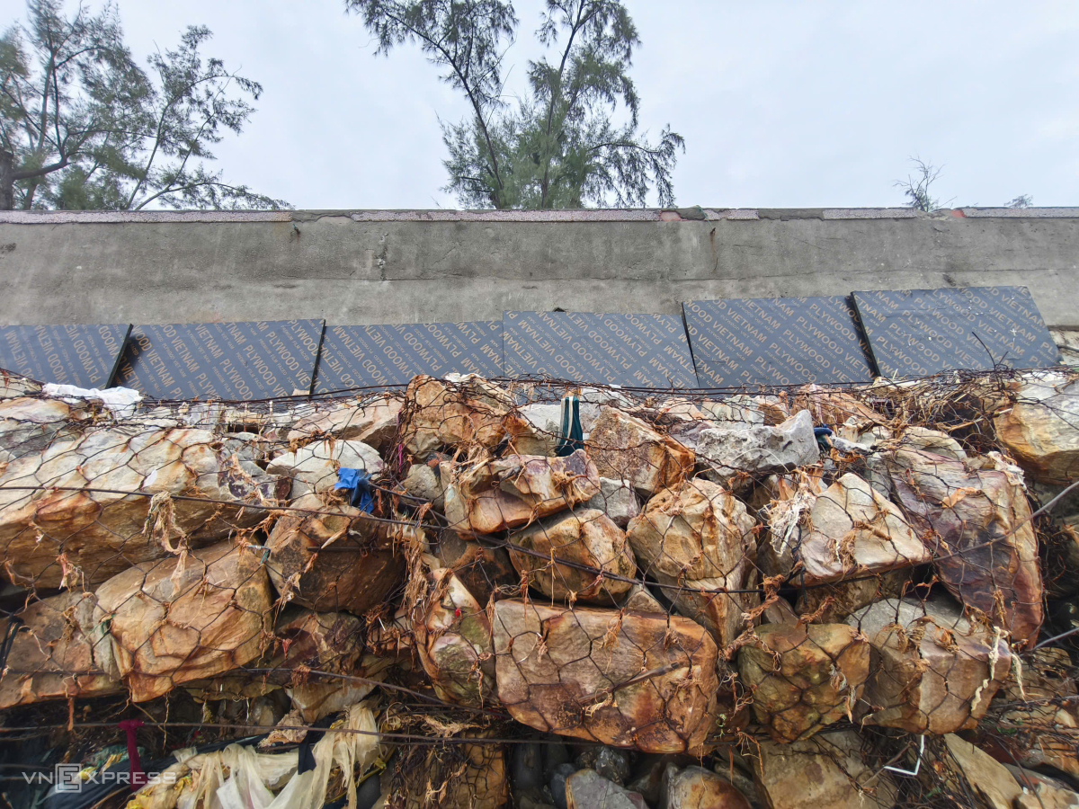 Hiện tại, Công ty cổ phần Công trình công cộng và Dịch vụ du lịch Hải Phòng phải tạm gia cố bằng cách đóng ván khuôn chắn các lỗ thủng kết hợp với xếp rọ đá bao phía ngoài biển.