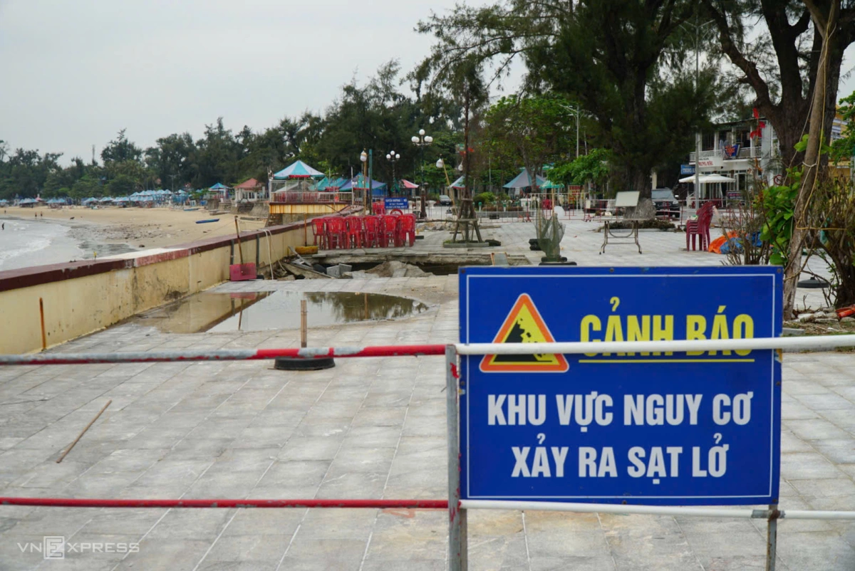 Do khu vực sụt lở mới nằm sát bãi biển khu II nên chính quyền đã lập hàng rào, đặt biển cảnh báo để ngăn du khách đi vào.