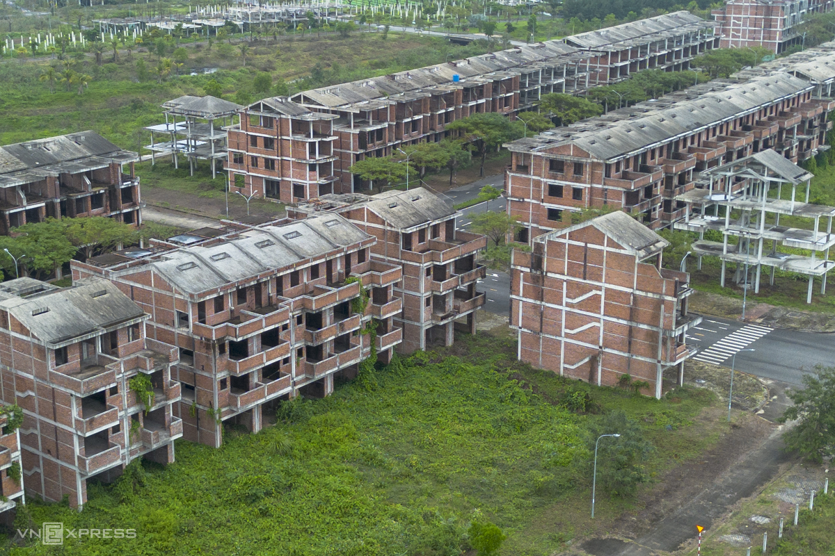 Dự án gồm 485 biệt thự đơn lập (diện tích 500-1.000 m2) và 360 biệt thự song lập (300-600 m2), phần lớn mới xây thô.