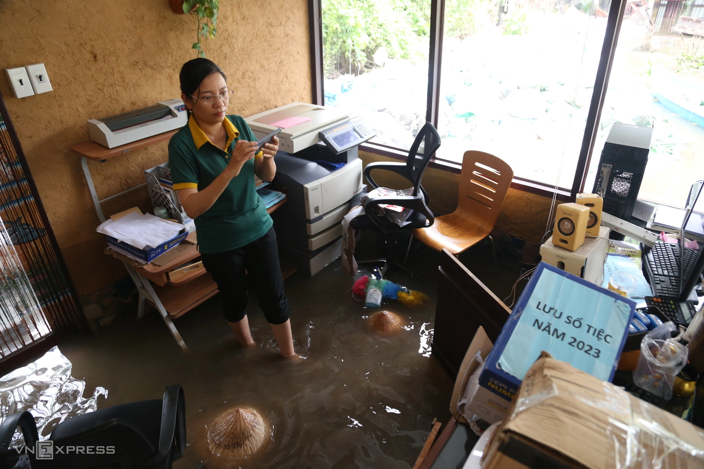 Nước ngập tràn vào phòng kinh doanh và lễ tân nằm giữa khu du lịch. Bên trong, nhiều máy tính, máy in và sổ sách bị thấm nước hư hỏng.