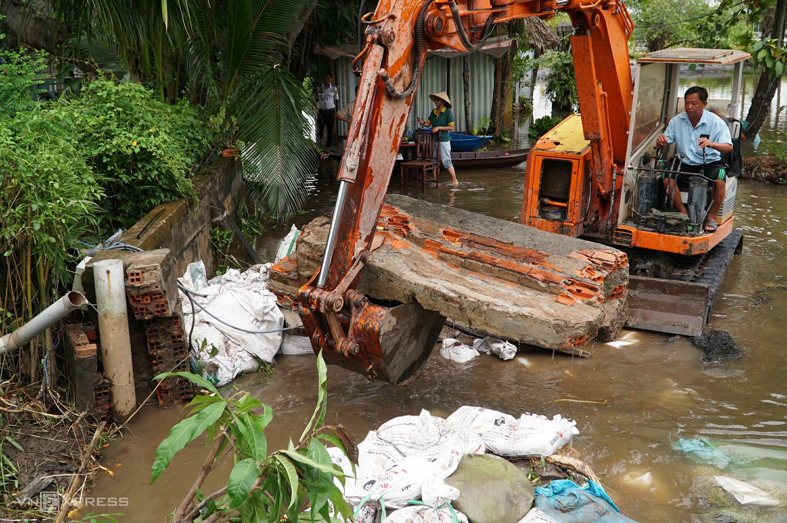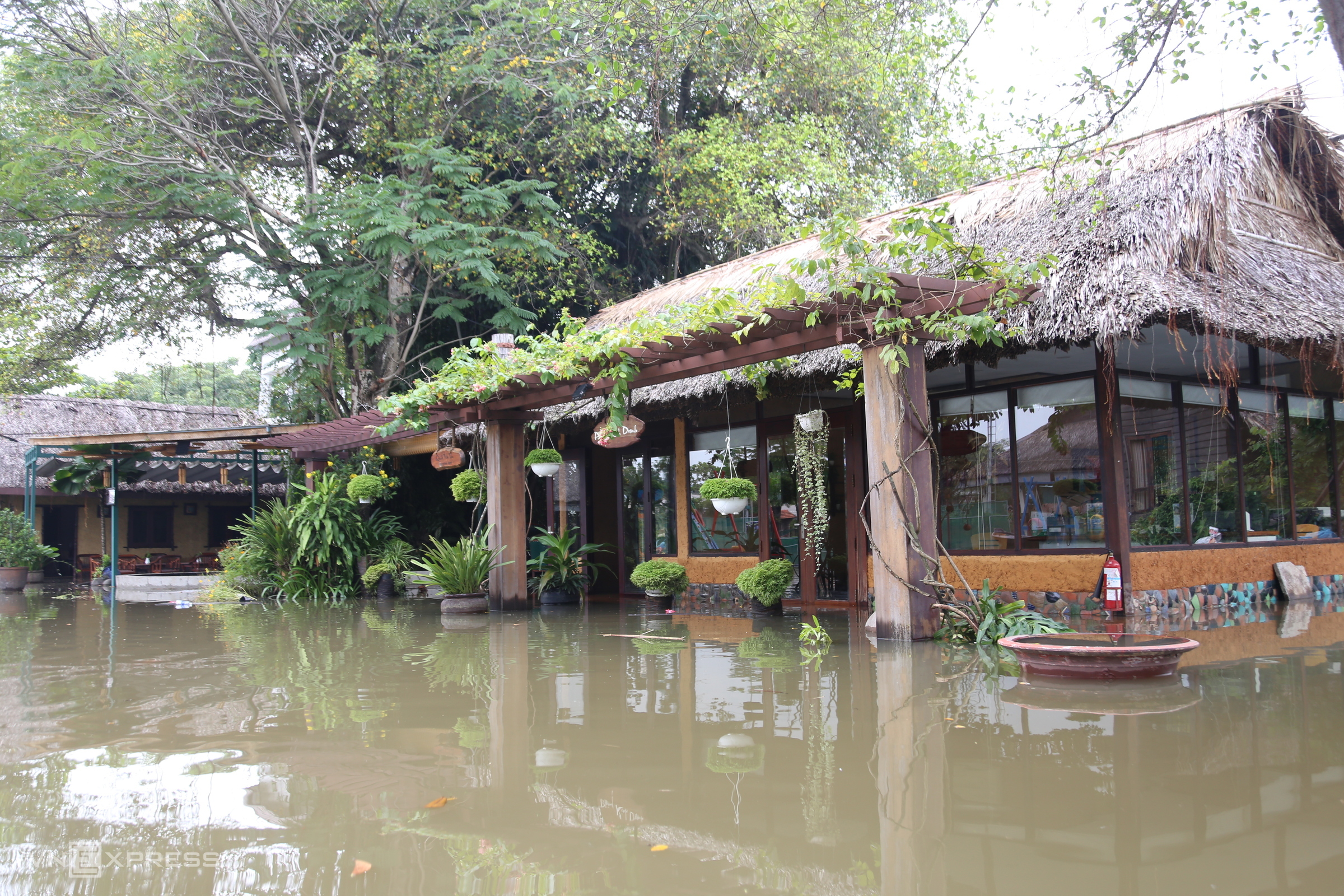 Cách đó 300 m, một nhà hàng ven sông cũng bị ngập. Tối hai hôm trước, bức tường chắn tại đây bị đổ sập, nước tràn vào khiến nhiều đồ đạc và khu vực ăn uống của khách bị ngập nặng.