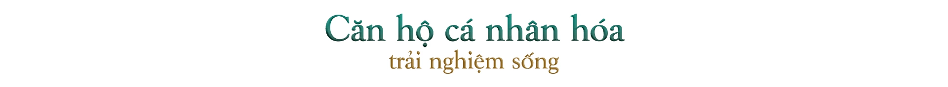 Không gian căn hộ chú trọng vào hai khu vực chính: bếp và phòng tắm. Khu bếp nổi bật với mặt đá Solid Surface LG bo cong, hệ tủ phủ Laminate Fenix có khả năng chống thấm, chống ẩm, cùng thiết bị Bosch và Hafele cao cấp. Phòng tắm được bố trí theo layout khô - ướt tách biệt, sử dụng thiết bị Grohe (Đức), kết hợp phụ kiện inox mạ vàng, mang lại trải nghiệm thư giãn như trong khách sạn.