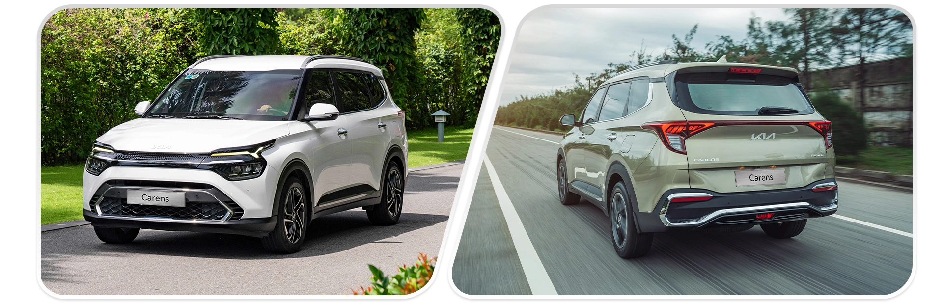 Khác biệt đối thủ cùng phân khúc, Kia tạo hình cho Carens mang hơi hướng hiện đại và đậm chất thể thao của dòng SUV. Phần đầu xe nổi bật với dải đèn định vị ban ngày LED Starmap, lấy cảm hứng từ bản đồ các chòm sao, thu hút nhóm khách hàng đô thị. Cụm đèn chiếu sáng LED mô phỏng tinh thể pha lê.