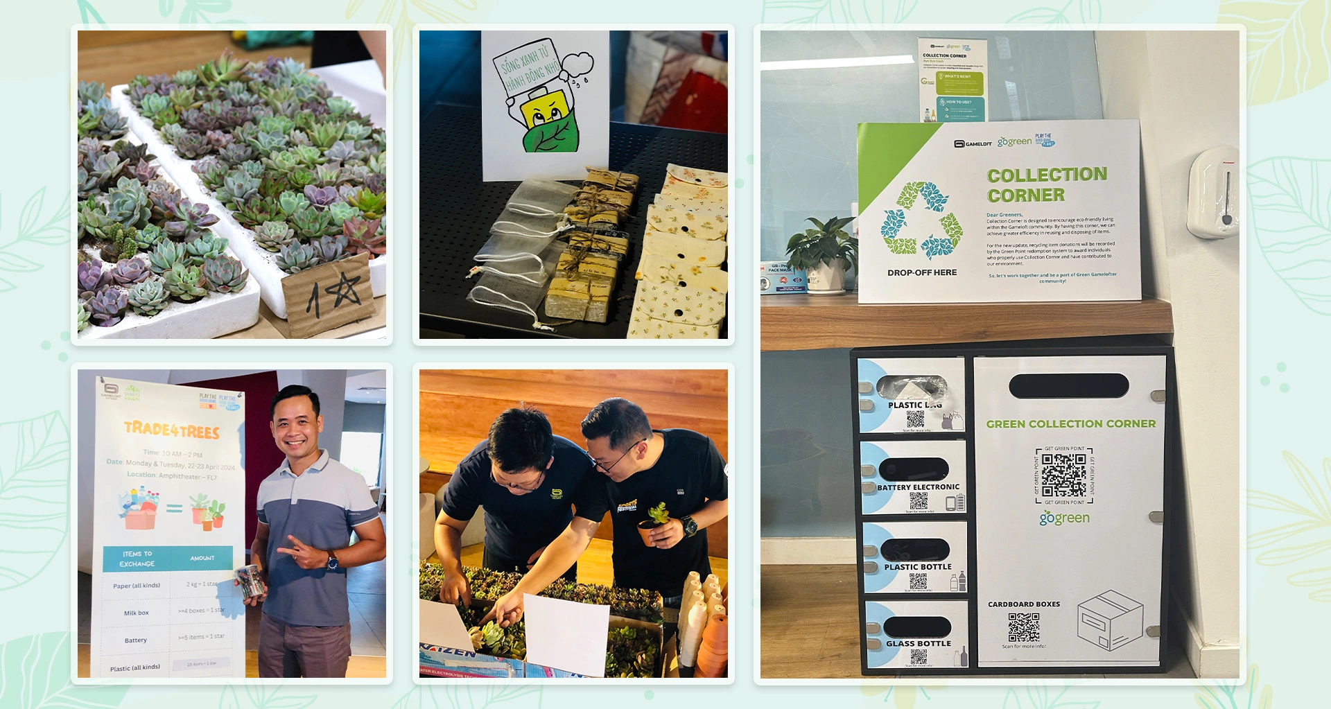 Trong đó, riêng 2024, doanh nghiệp ngành game đã triển khai hàng loạt sáng kiến vì môi trường. Chẳng hạn, trong tháng 3, ở cả studio Hà Nội và Sài Gòn, Gameloft phát động tuần lễ Eco Office nhằm tiết kiệm năng lượng, giảm rác thải tại văn phòng. Hàng trăm nhân viên cùng nhau thu gom, phân loại, tái chế rác và các vật dụng quá vòng đời. Kết quả, hàng trăm kg giấy, quần áo cũ, chai nhựa đã được thu gom trong chiến dịch.