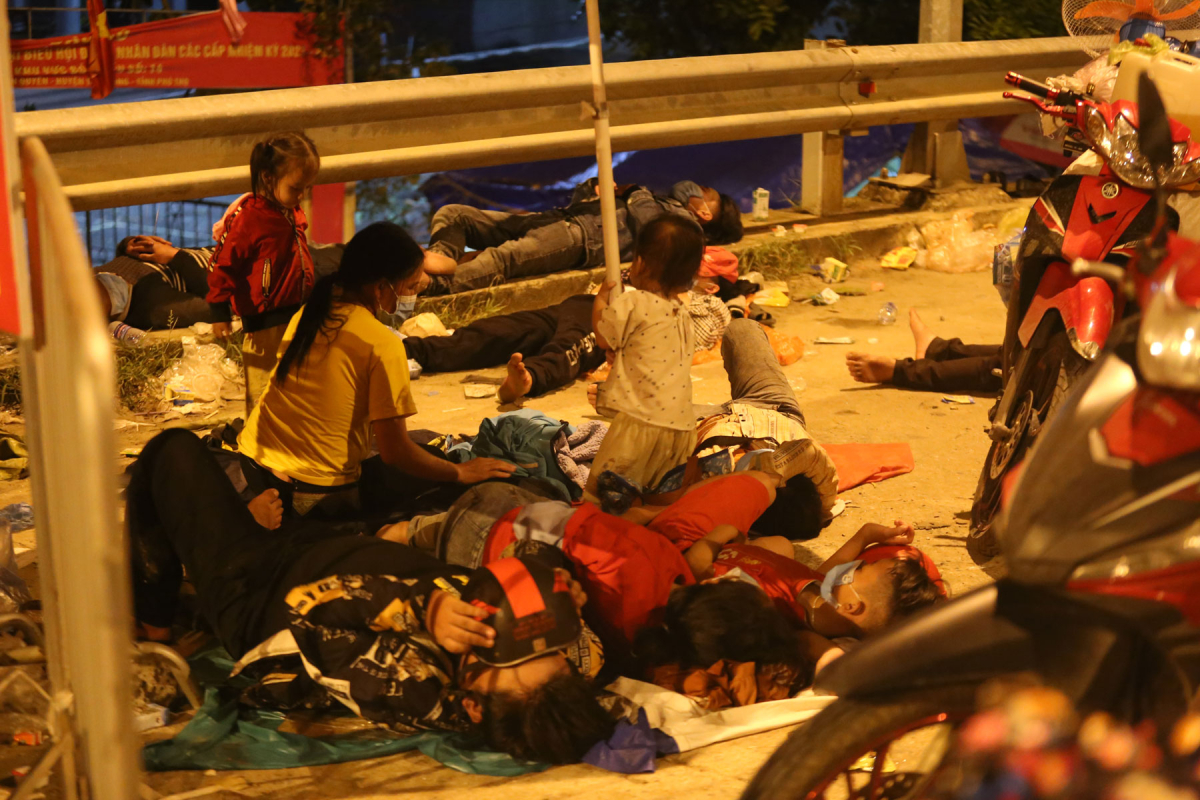 Đêm 5/10, hơn 300 người dân các tỉnh Sơn La, Lào Cai dừng chân trên đầu cầu Trung Hà thuộc địa phận huyện Tam Nông (Phú Thọ), chờ cảnh sát giao thông phân loại và dẫn đường về quê.