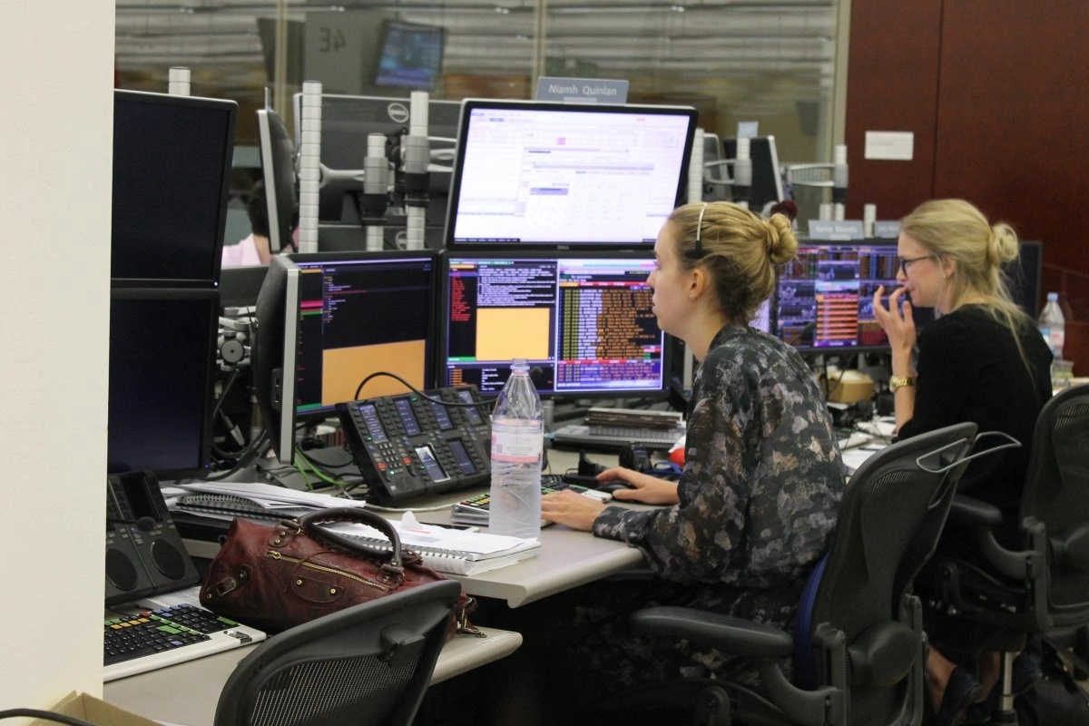 Lúc 7 giờ, các nhà phân tích và nhân viên kinh doanh có một cuộc họp ngắn trước khi sàn giao dịch mở cửa. Cuộc họp còn được kết nối trực tuyến với các nhà phân tích ở những địa điểm khác trên thế giới.