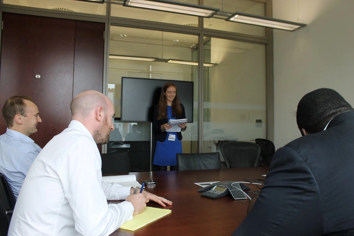 Buổi chiều, Sophie có nhiệm vụ làm một bài thuyết trình dài 10-15 phút về sàn chứng khoán châu Âu trước các nhà phân tích và các thực tập sinh khác. Sau đó các nhà phân tích sẽ đặt ra những câu hỏi khá khắt khe mà trên thực tế Sophie có thể gặp phải khi làm việc với khách hàng.