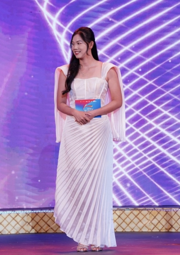 Tại lễ trao giải Cúp chiến thắng 2024 ở Hà Nội, Ánh Viên được khán giả khen ngợi trong bộ đầm trắng xếp ly bất đối xứng trên sân khấu.