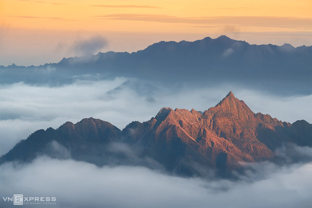 Cung đường leo lên đỉnh Tà Xùa nổi tiếng trong giới xê dịch nhờ cảnh sắc mê hồn và hùng vỹ. Đỉnh Tà Xùa cao 2.865 m, là nơi giáp ranh hai huyện Trạm Tấu (Yên Bái) và Bắc Yên (Sơn La). Tà Xùa quyến rũ mọi tâm hồn mê du lịch với biển mây trắng xóa cuồn cuộn, lãng đãng giữa những dãy núi cao. Hình ảnh được nhiếp ảnh gia Trần Văn Linh (sinh năm 1994) chụp vào chiều hoàng hôn tại lán nghỉ thứ nhất. Khung cảnh như chốn thần tiên này là khoảnh khắc anh từng mơ ước được thấy tận mắt.