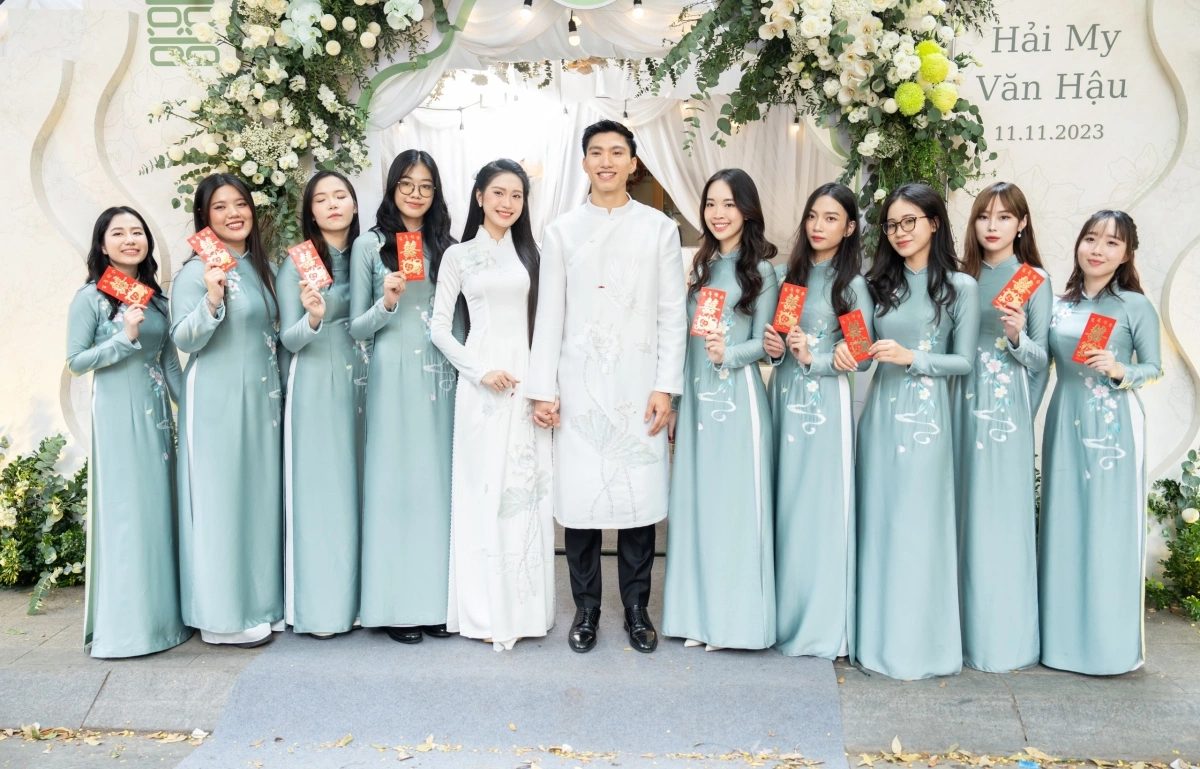 Đoàn Văn Hậu dắt tay vợ chào hai họ. Video: Hà Thu
