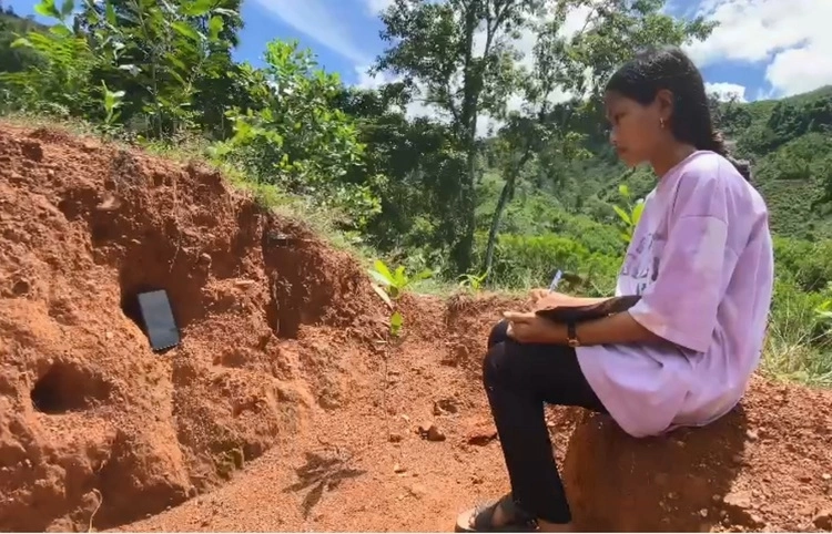 Không chỉ riêng chị em Tiếp, nhiều học sinh ở xã Long Môn ở vùng lõm cũng phải lên các vị trí cao như sườn dốc, núi đồi để có sóng mạnh học trực tuyến.