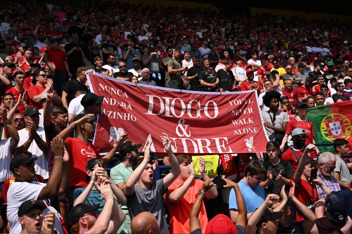 Bài hát truyền thống của Liverpool, You’ll Never Walk Alone được cất lên, và hình ảnh của Jota và Silva thời còn ở Porto được chiếu trên màn hình lớn.