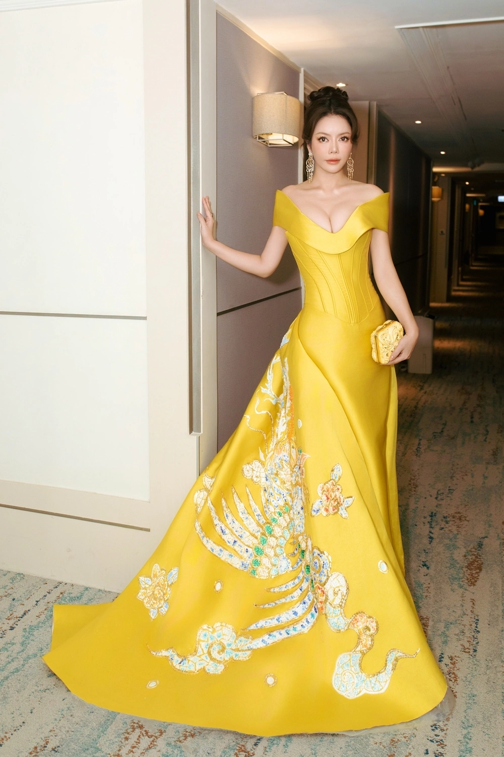 Cô vừa trở về sau chuyến công tác Đài Loan, gặp gỡ một số tỷ phú, doanh nhân nổi tiếng. Khi tham dự một sự kiện, Lý Nhã Kỳ (phải) diện váy dạ hội kết hợp phong cách cổ điển và hiện đại của nhà thiết kế Nguyễn Phúc Tuấn.