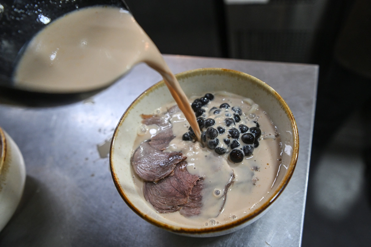 Món mì trà sữa trân châu thịt bò xuất hiện tại Hà Nội từ cuối tháng 9, thu hút sự chú ý vì sự kết hợp lạ. Đây là sản phẩm chỉ bán trong một khoảng thời gian của chuỗi nhà hàng Yu Tang, không xuất hiện chính thức trong thực đơn.