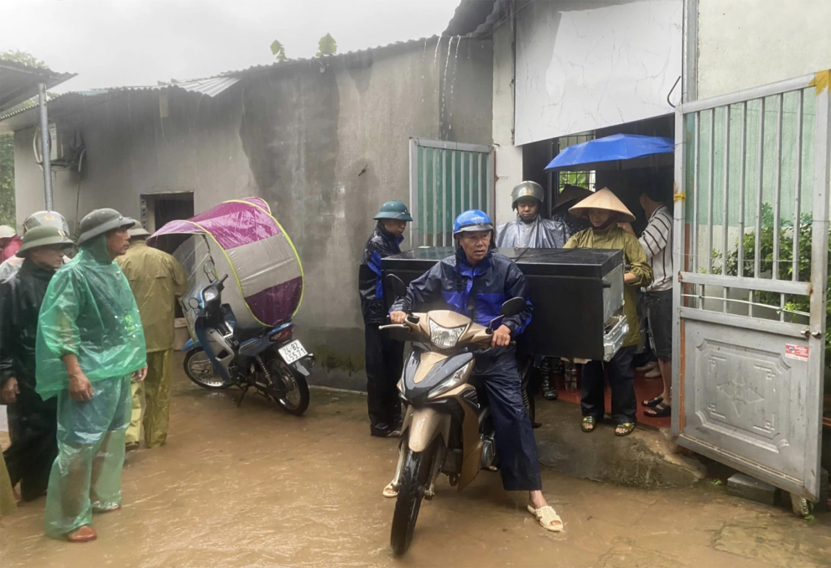 Lực lượng chức năng hỗ trợ người dân ở TP Lào Cai di dời tài sản ra khỏi vùng ngập lụt.