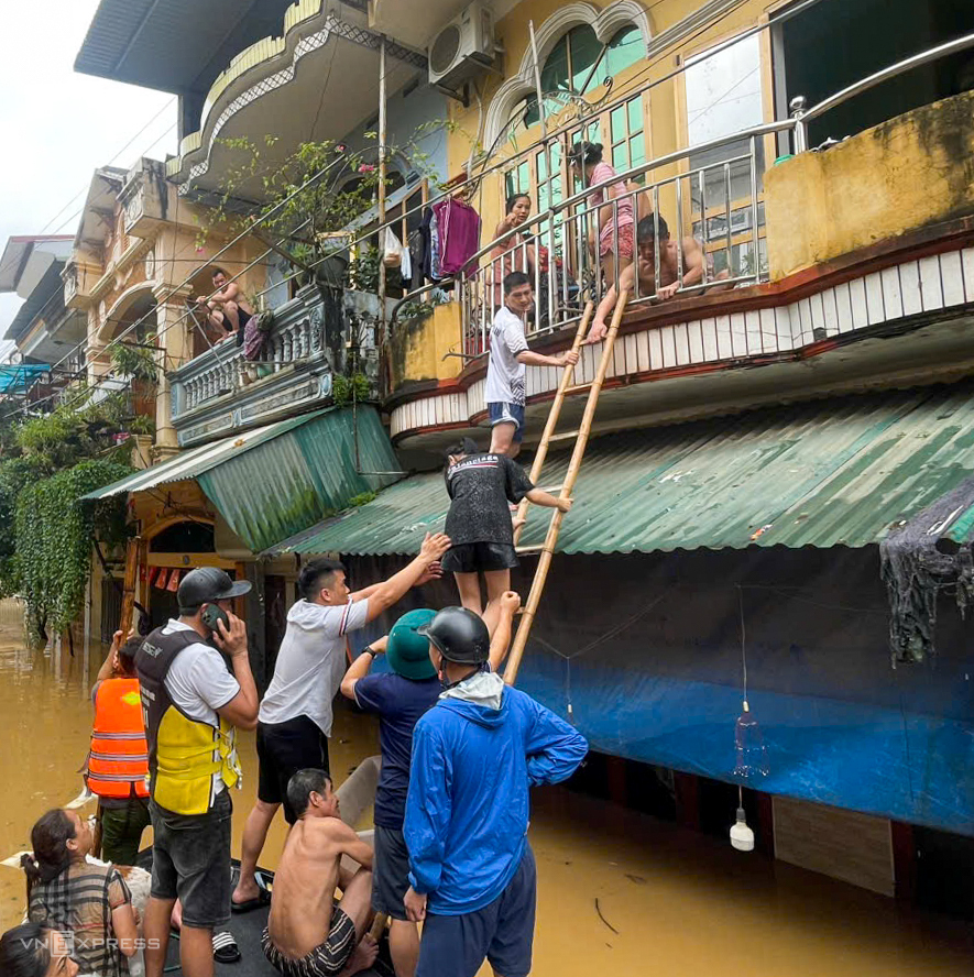 Tại Yên Bái, nước sông Hồng dâng nhanh trên báo động 3 khiến nhiều khu vực phường Hồng Hà, Nguyễn Thái Học (TP Yên Bái) ngập ngang bụng. Các đường lớn như Thanh Niên, Trần Hưng Đạo ngập sâu 1-2 m, nước tràn vào nhà sâu gần một mét. Trong đêm qua, lực lượng cứu hộ cử hàng trăm người hỗ trợ người dân di tản, đồ đạc lên vị trí cao.