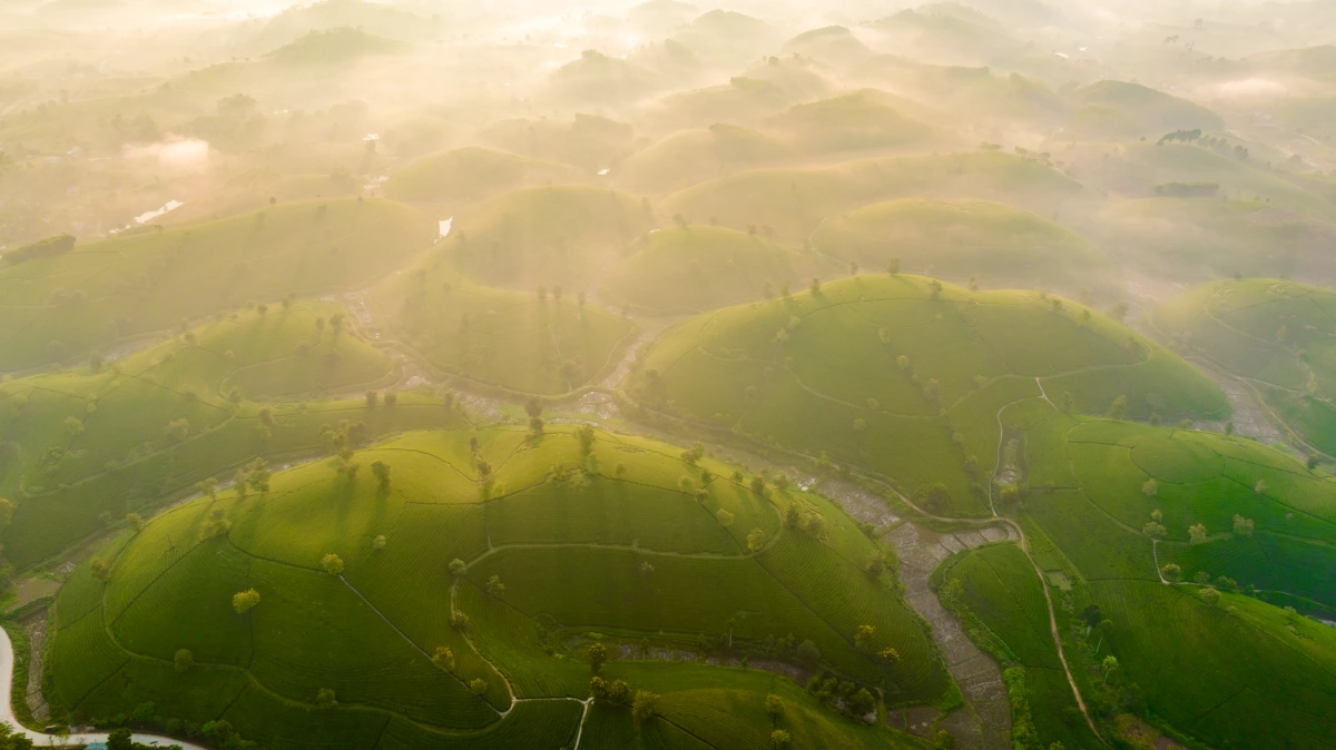 Ngoài săn sương sớm, ngắm đồi chè dưới ánh bình minh cũng là một gợi ý. Đó là một khung cảnh được du khách miêu tả là "khoảnh khắc siêu thực". "Khi bạn đang mải mê ngắm nhìn những tia nắng len lỏi qua lớp sương mờ ảo, bao phủ toàn bộ đồi chè trùng điệp, thì bất ngờ cả Long Cốc bừng sáng dưới ánh bình minh. Khung cảnh lúc đó, đẹp như một bức tranh thủy mặc vậy", anh Nguyễn Anh Chiêm, một du khách từ Hà Nội, chia sẻ với VnExpress.