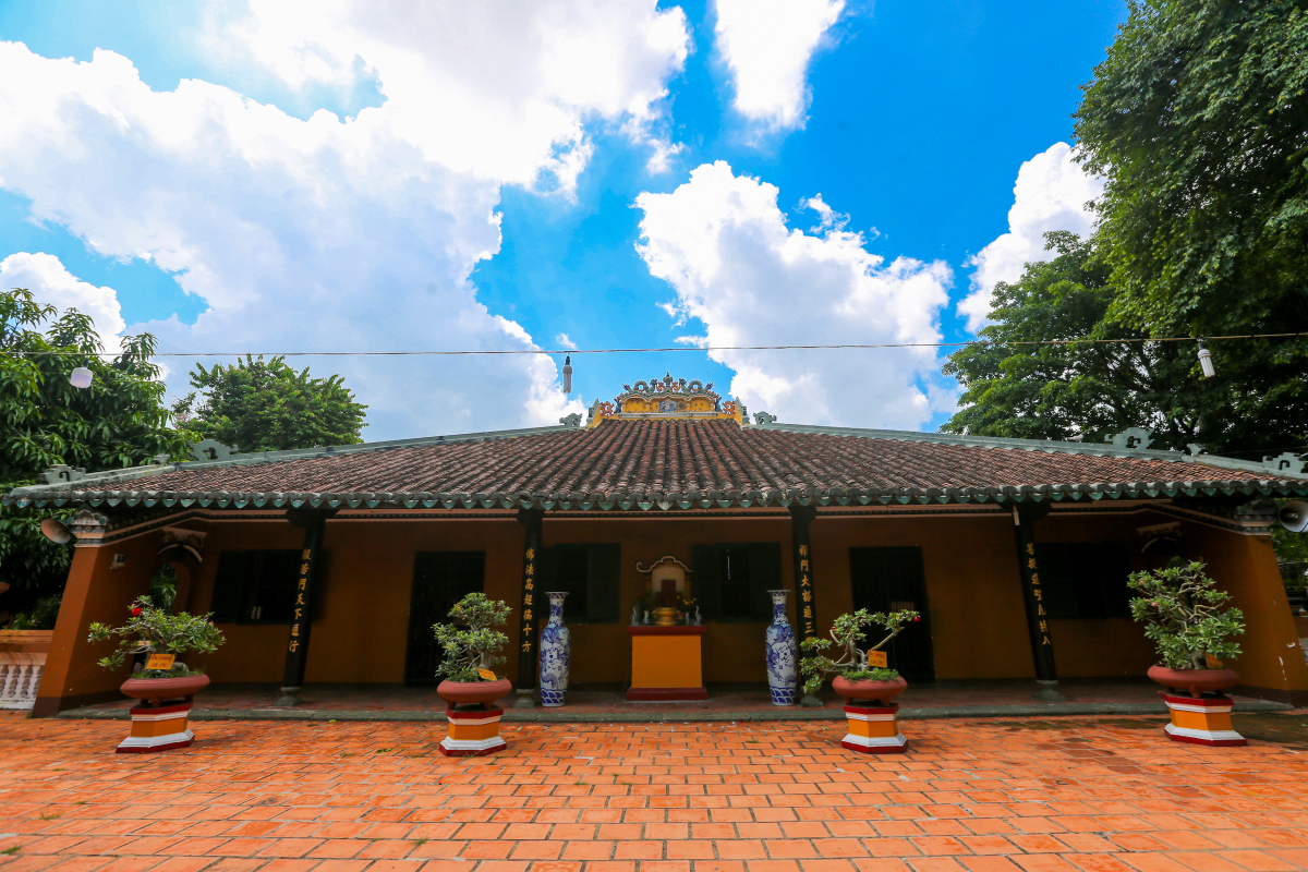 Chính điện xây kiểu nhà cổ với một gian hai chái và tứ trụ. Bên trong điện khá rộng và sâu, có 56 cột lớn màu nâu sẫm. Cột nào cũng được chạm khắc câu đối, sơn son thếp vàng công phu.