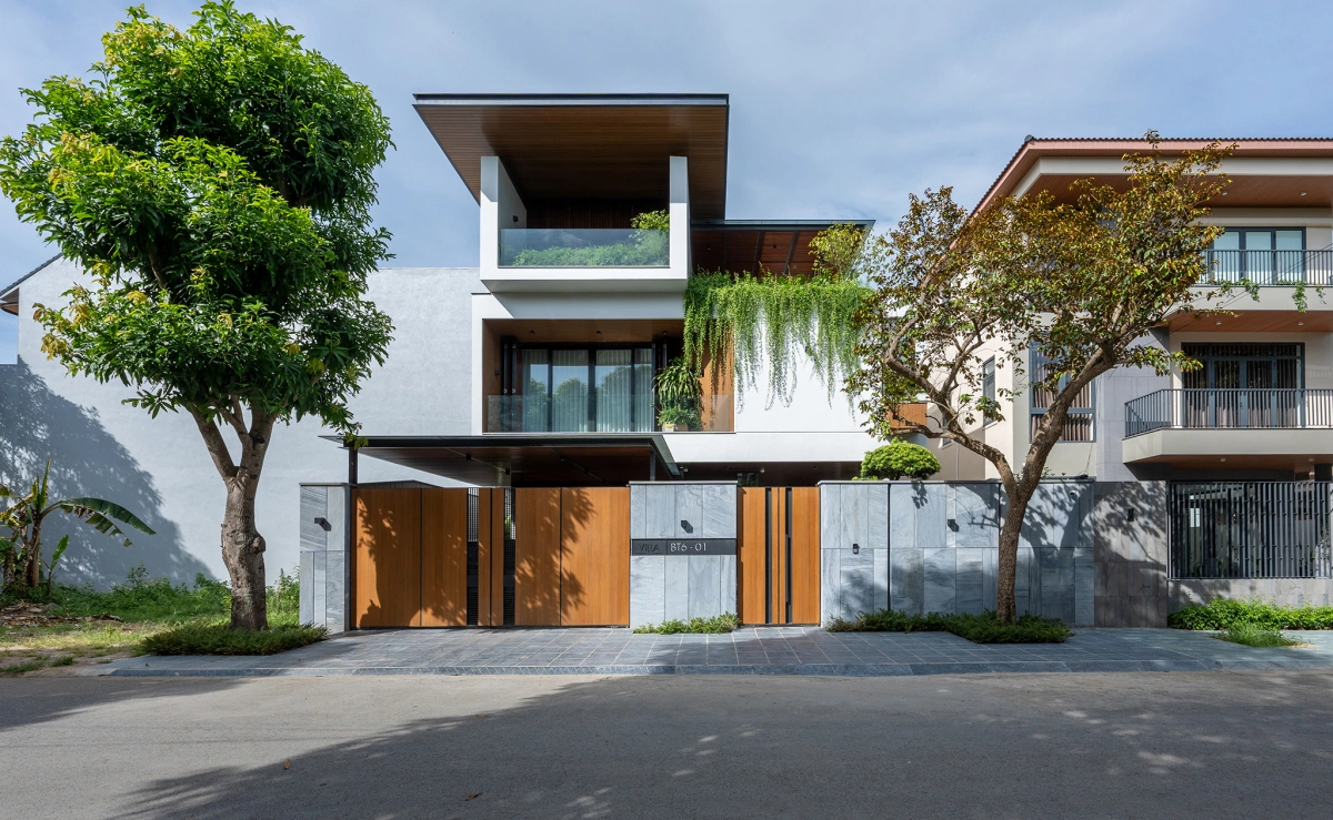 Giải pháp đưa ra là "đóng" hướng gió nóng phía Tây Nam, bằng cách sử dụng các khoảng ban công lùi sâu, hệ thống cửa hai lớp, đồng thời "mở" một khoảng không của ánh sáng, gió, vườn cây, hồ nước nhờ co lại không gian phòng khách, bếp - ăn.