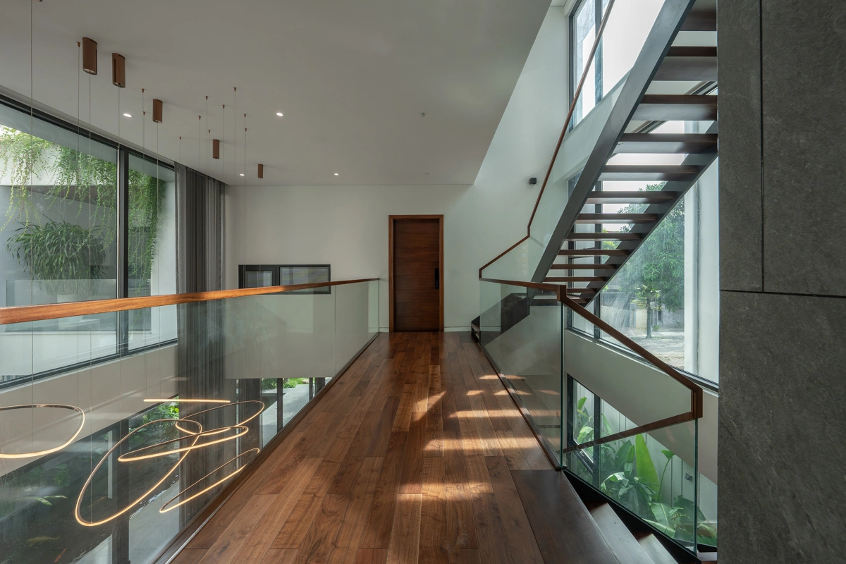 Khoảng thông tầng ở giữa nhà là điểm nhấn chính trong không gian nội thất, giúp lấy sáng tốt hơn và đảm bảo sự đối lưu không khí.