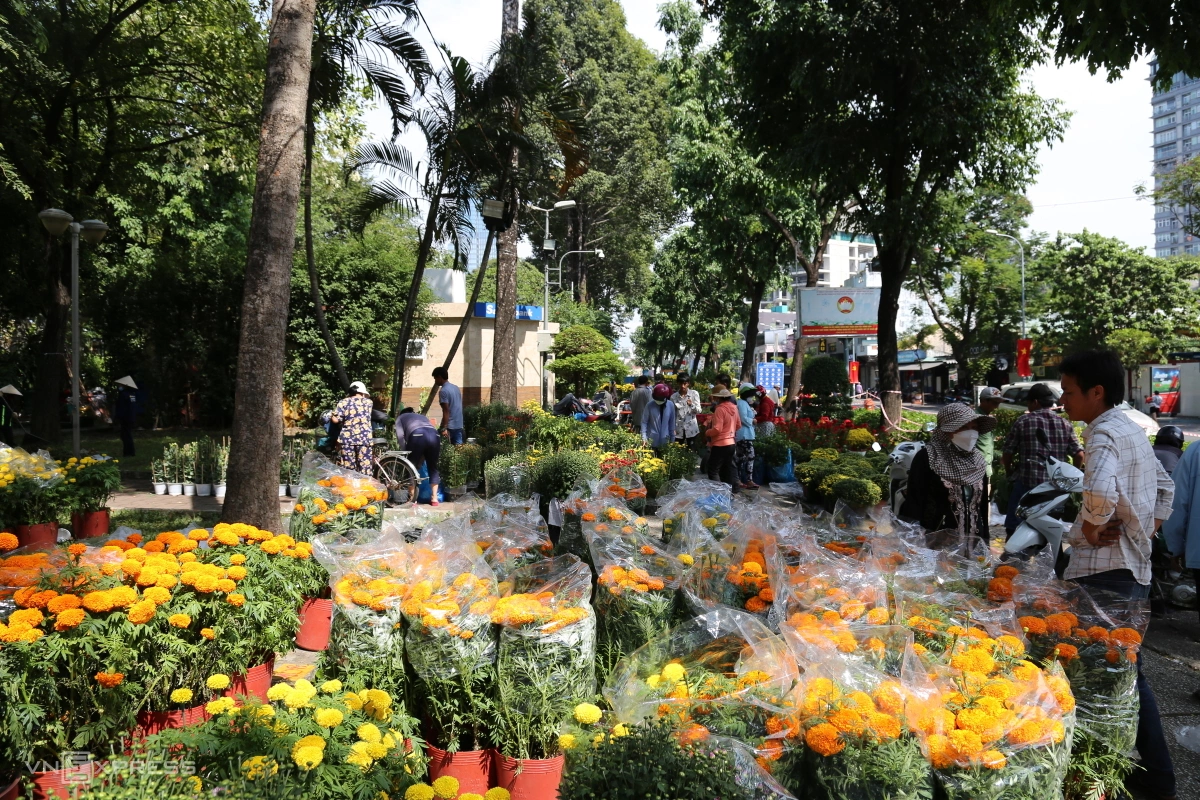 12h, chợ hoa Công viên Gia Định, quận Gò Vấp cũng đóng cửa để dọn dẹp vệ sinh. Rất nhiều chậu hoa hỏng, xấu, thối rễ... bị bỏ lại. Trong đó hoa cúc, vạn thọ... bị bỏ nhiều nhất được lực lượng công nhân vệ sinh tất bật thu gom vào xe rác.