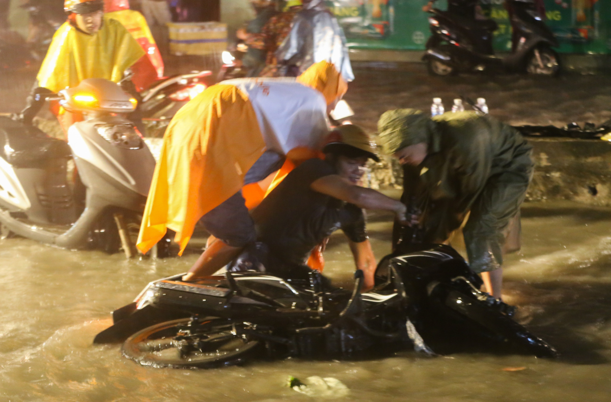 Áp thấp nhiệt đới sau bão Usagi khiến mưa lớn khắp TP HCM, kéo dài nhiều giờ làm ít nhất 40 tuyến đường ngập nặng. Nhiều con đường vốn là điểm ngập của thành phố như Huỳnh Tấn Phát, Nguyễn Hữu Cảnh, Hồ Học Lãm, Hồng Bàng, Thảo Điền... tiếp tục thành biển nước trong cơn mưa tầm tã kéo dài.
