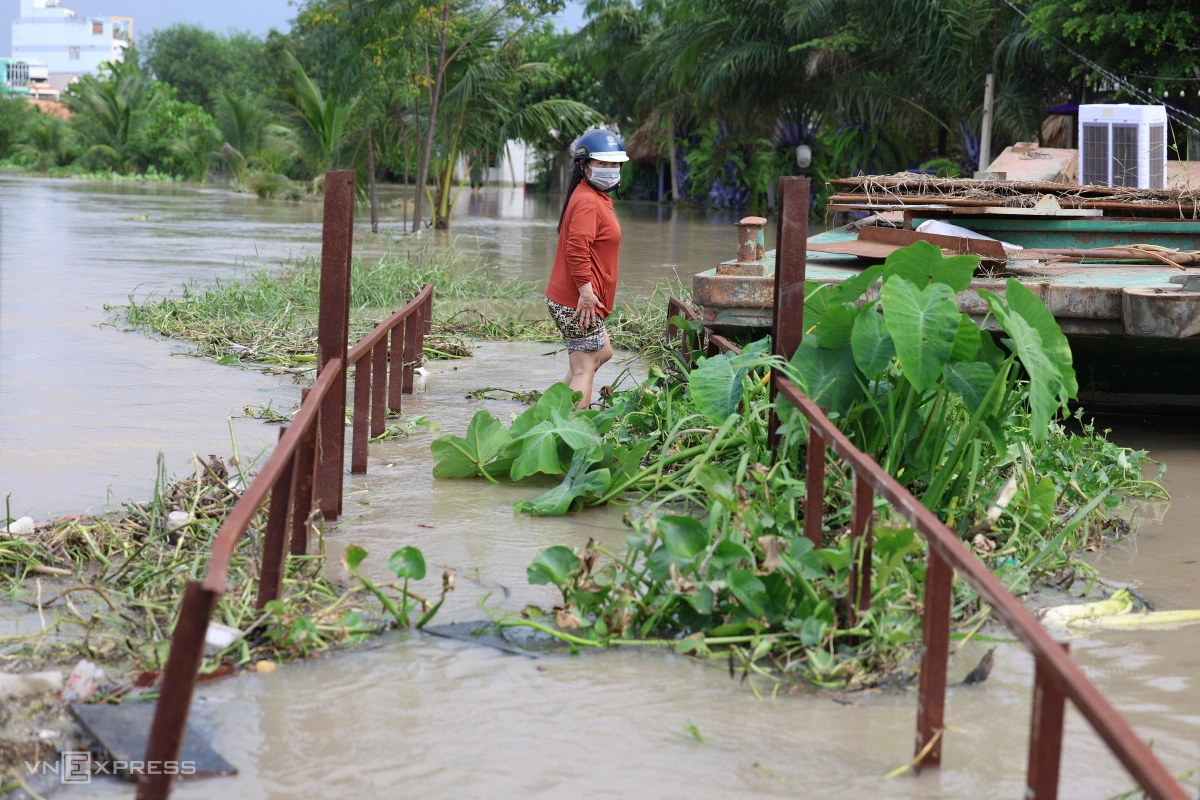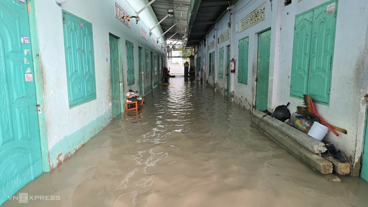 "Nước tràn vào khu trọ lúc rạng sáng qua đến nay vẫn chưa rút. Nhiều người đã bỏ phòng đi kiếm nhà người thân ở tạm", chị Hằng, thuê trọ tại đây nói.
