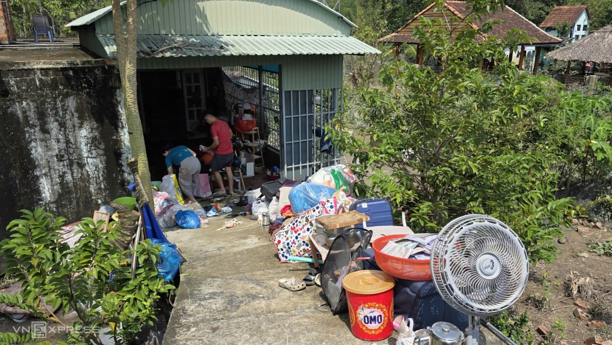 Hộ dân ở phường Bến Cát phơi đồ đạc bị ướt sau trận lũ rạng sáng nay.