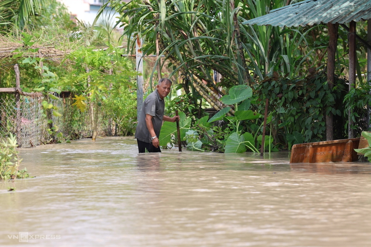 Ông Nguyễn Văn Khanh, 65 tuổi, ở phường Long Nguyên cho biết đêm qua cả nhà đang ngủ nghe nước sông Thị Tính chảy ầm ầm nên bật điện lên, nước đã gần vào nhà. "Lúc này mới lật đật kê đồ điện tử lên cao, song nhiều đồ đạc vẫn ngập hư hỏng", ông Khanh kể.