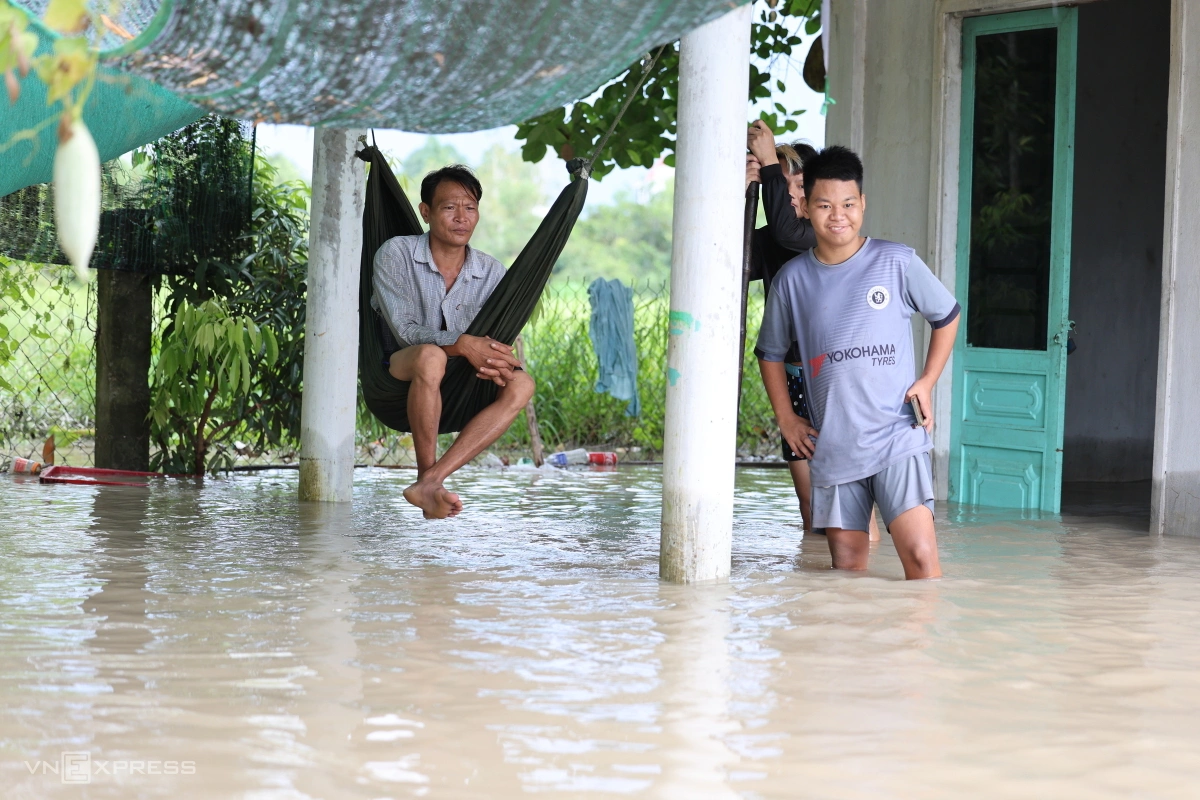 Cách nhà ông Khanh chừng 200 m phía thượng nguồn sông Thị Tính, ông Lê Quốc Châu, 48 tuổi, ngồi trên võng trước hiên chờ nước rút. "Nước lên lúc rạng sáng, do đang ngủ nên gia đình trở tay không kịp, đồ đạc, sách vở của các con ướt hết", ông Châu nói.