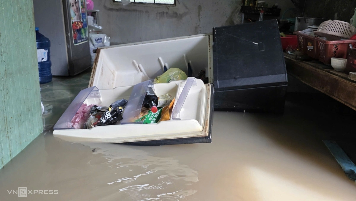 Nhiều đồ điện tử như tủ lạnh, máy quạt, xe máy... của gia đình ông Châu bị nước nhấn chìm hư hỏng.