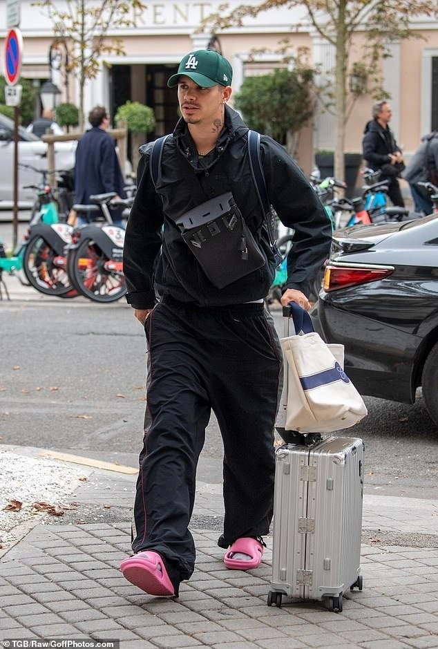 Trang phục của Romeo lại đi theo hướng năng động, kết hợp giữa đồ đắt tiền và bình dân với dép nhựa hồng, túi Hermes. Ảnh: GoffPhotos