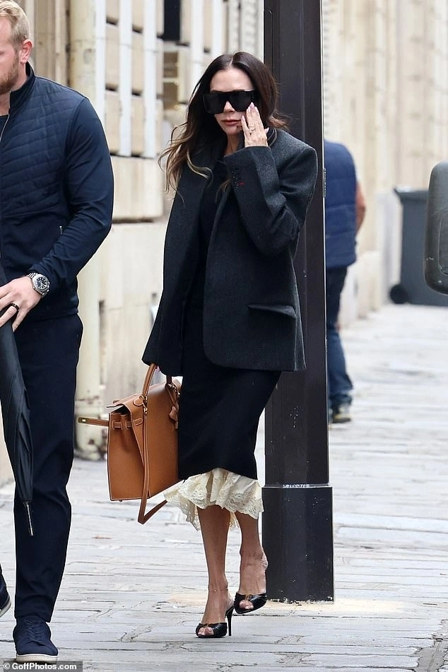 Trước buổi trình diễn một ngày, cả gia đình Beckham cũng gây chú ý khi chưng diện những bộ cánh hợp mốt, kết hợp túi Hermes. Victoria phối đầm suông cùng blazer len theo phong cách sang trọng thầm lặng. Ảnh: GoffPhotos