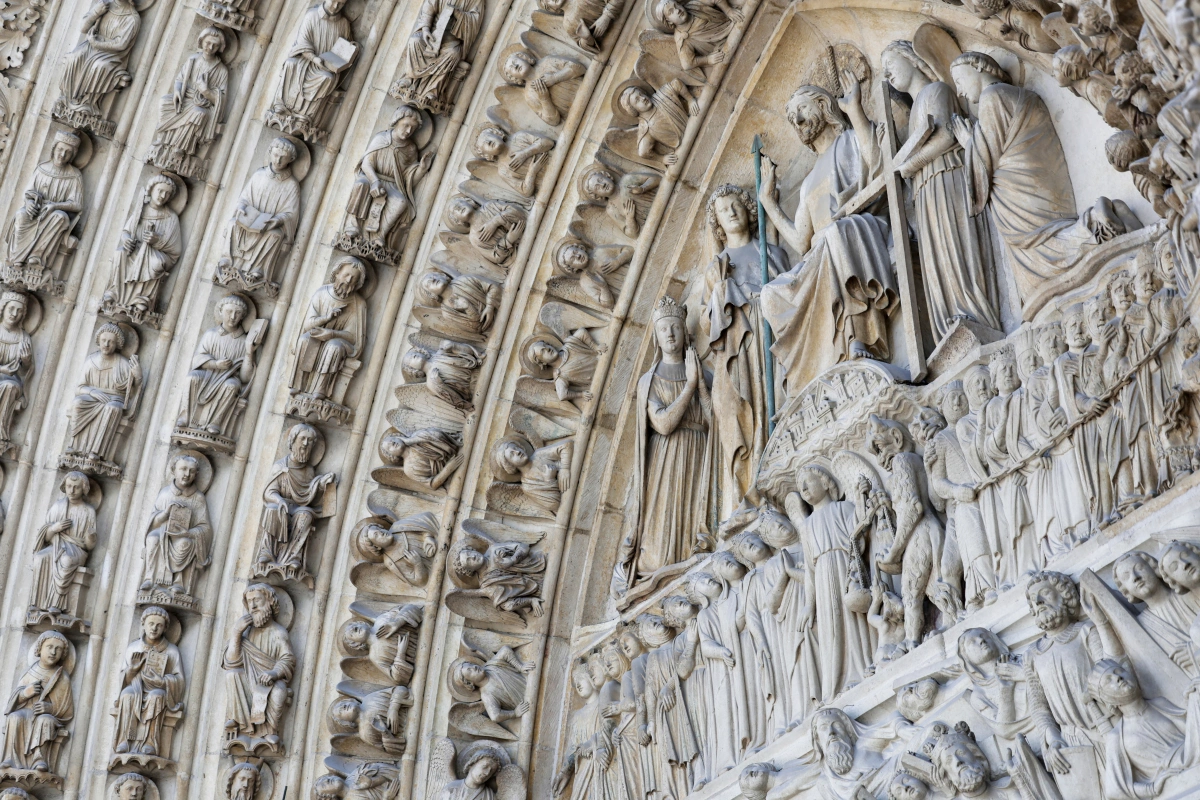 Một phần phù điêu bên ngoài Nhà thờ Đức Bà.