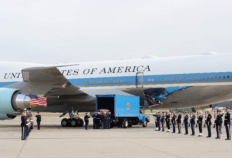 Linh cữu được đưa lên máy bay tại căn cứ Andrews ở Maryland. Ông sẽ được an táng tại khu đất của gia đình ở Thư viện và Bảo tàng Tổng thống George HW Bush trong khuôn viên Đại học Texas A&M ở College Station.