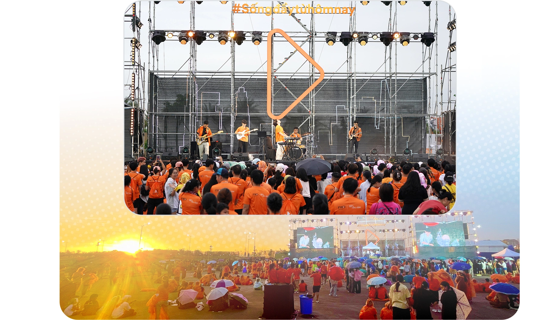 tác, nhảy múa và hò reo, cùng nhau tạo nên một dòng chảy năng lượng lan tỏa khắp sự kiện.