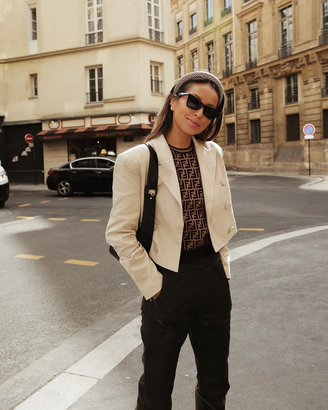 Các chị em còn có thể diện quần lửng dài qua gối chất liệu da, sơ mi kèm vest lửng, giày phá cách khi đi làm. Ảnh: Instagram Jenwonders.